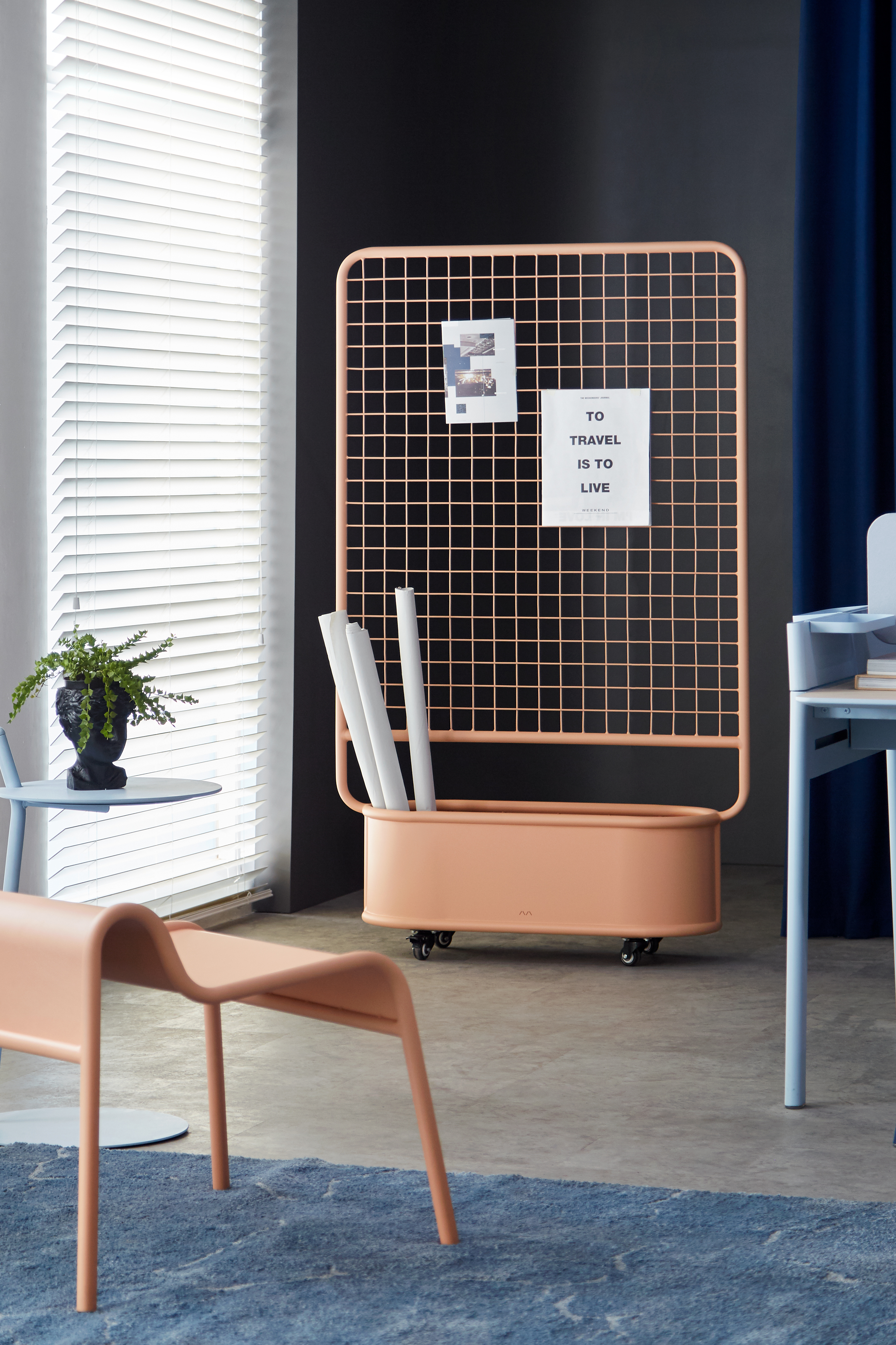 The Partium Partition is a movable screen equipped with a brake to accommodate your varying needs, from room divider to green wall for plants.