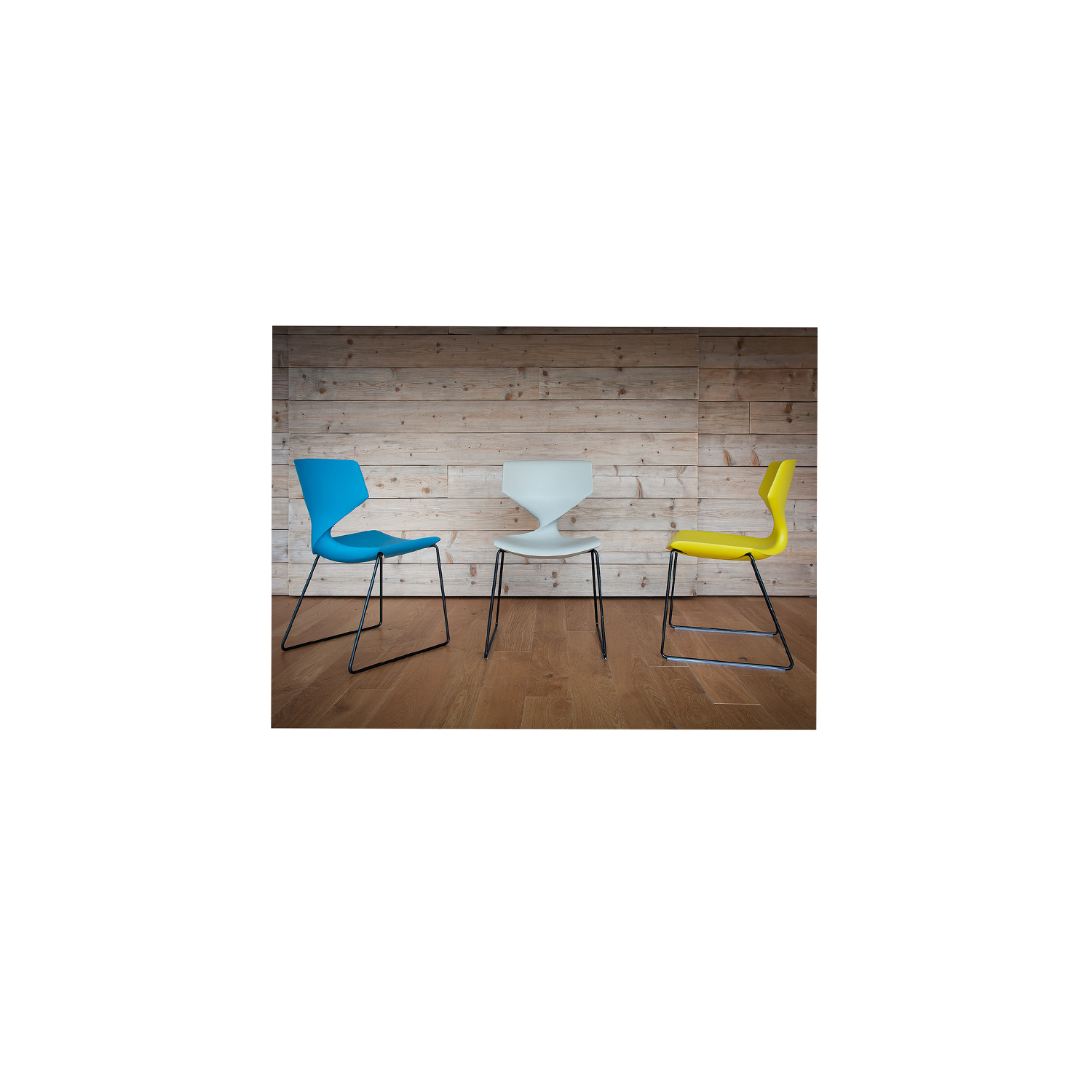 Quo is an elegant stacking chair which impresses with a very special twist in the back.