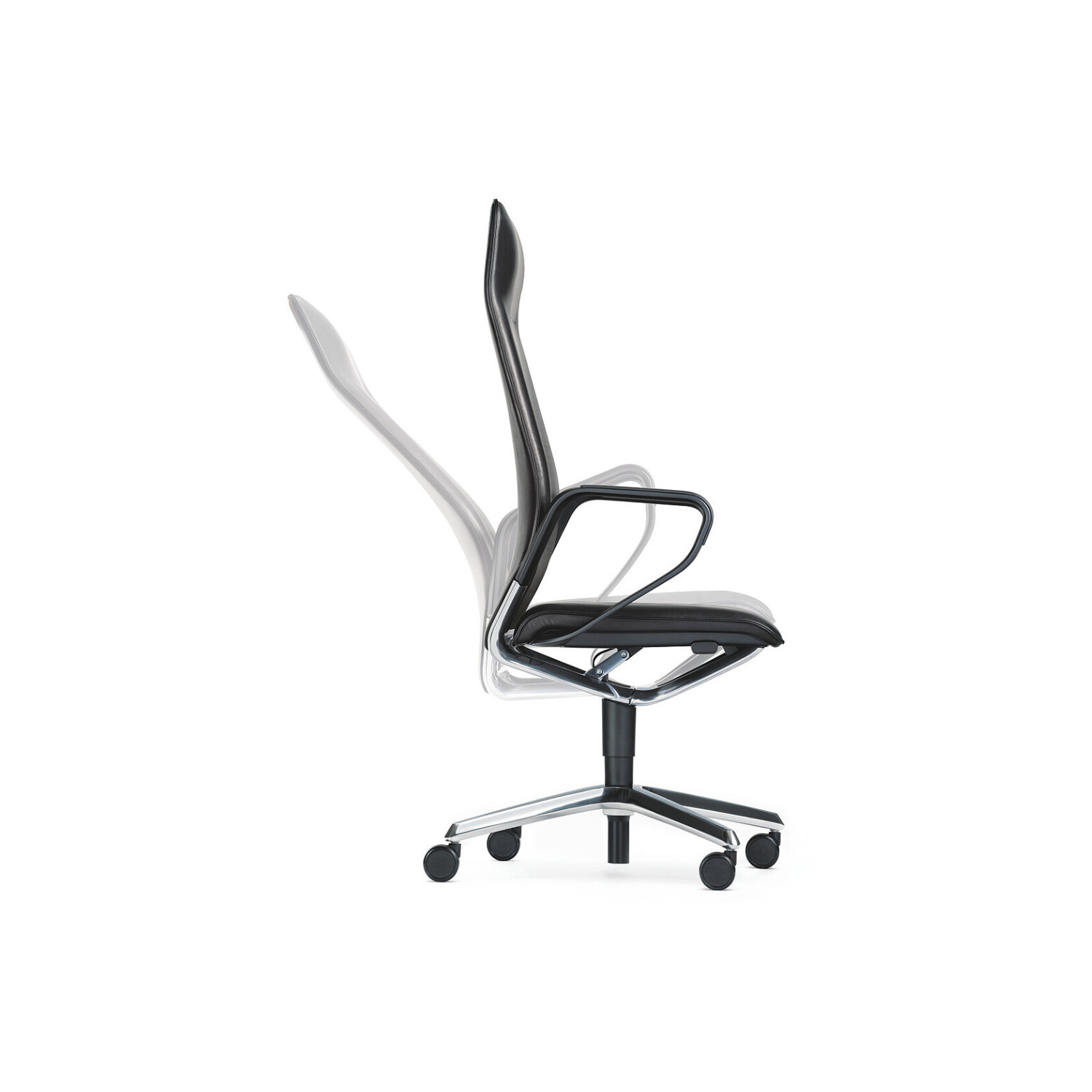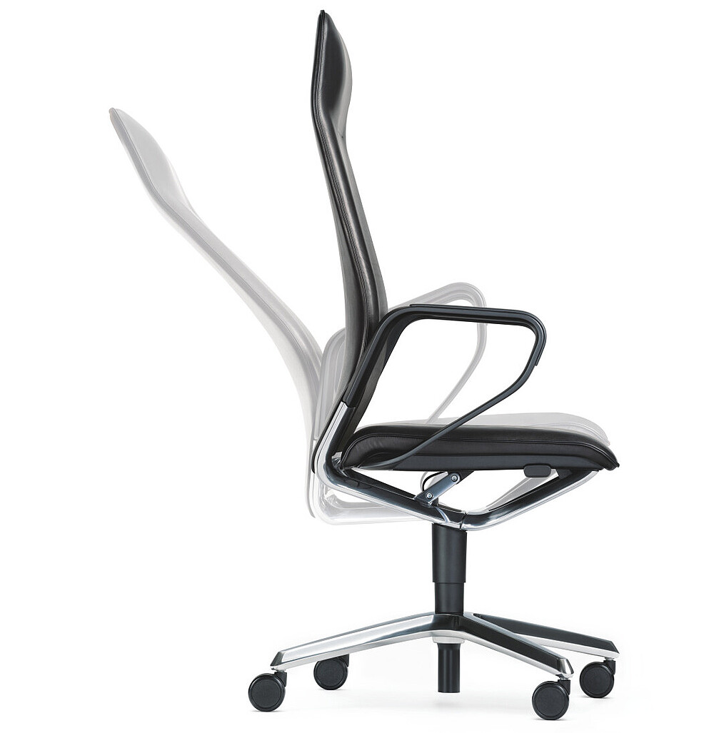 Featuring a high, as well as medium backrest, se:line radiates high-quality elegance. Its impressive seating comfort makes it perfect for both conference rooms and as a swivel chair in a senior manager’s office. Both versions have a high-quality aluminium cross-shaped base, which comes with a choice of castors or gliders. A polished version is available as well as a matt powder coating in white aluminium or black.