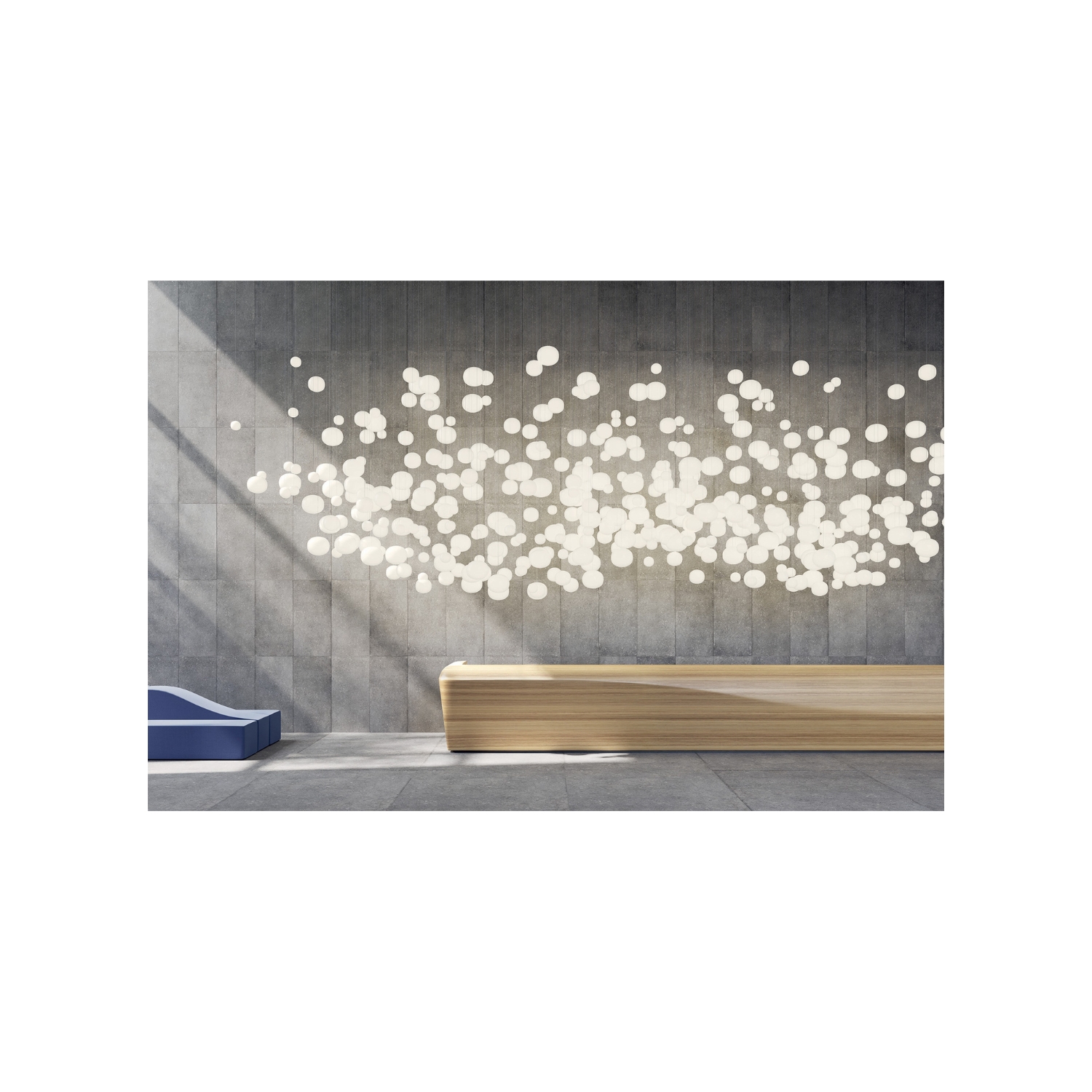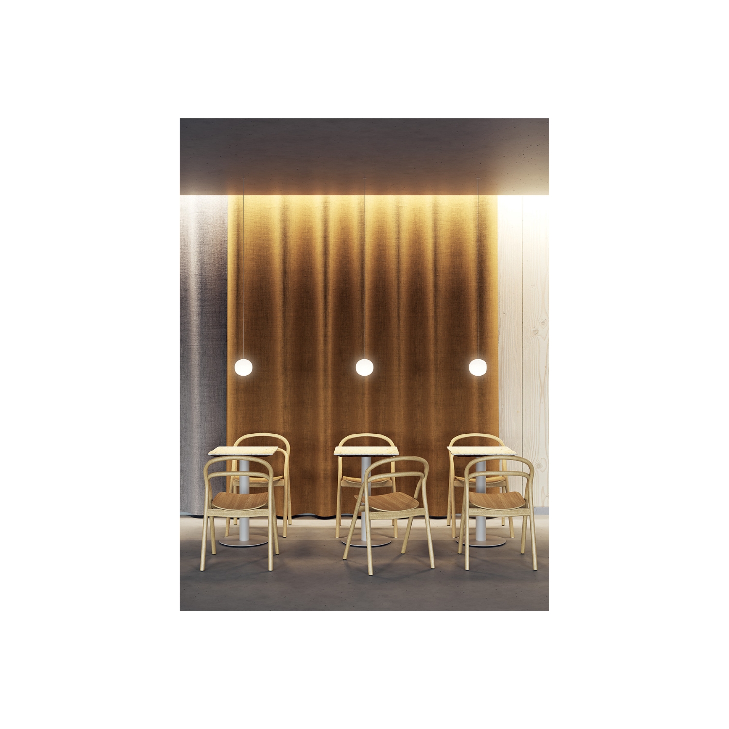 It is a product that offers the same level of functionality and aesthetics from every point in the space and, at the same time, celebrates the art of glassmaking. Designed to fill a space with a 360-degree illumination, Volum glows uniformly in all directions providing a calming and coherent radiance. The four blown glass spheres measure 14, 22, 29 and 42 cm in diameter.